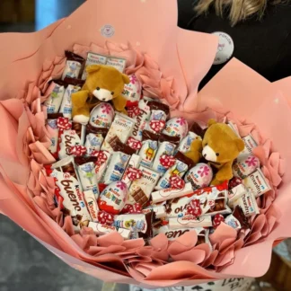 Buket Kinder MIX u obliku srca sa Kinder čokoladama i igračkama